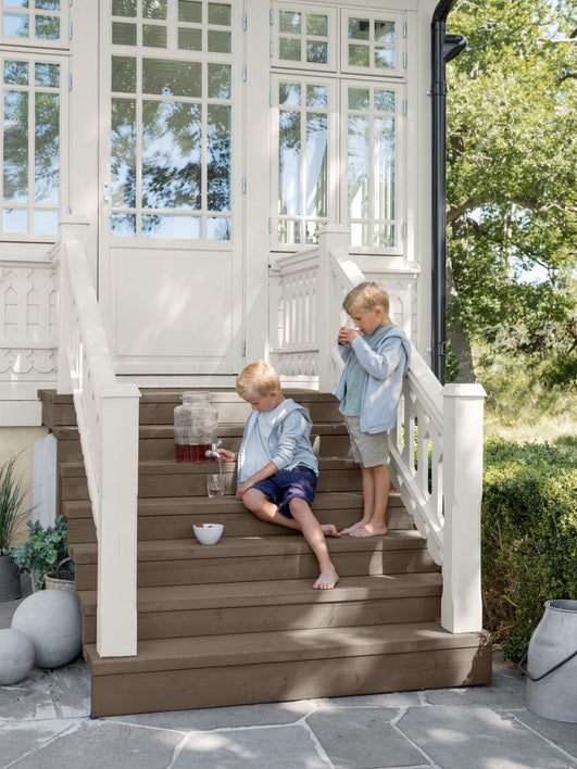 Det kan tyckas enkelt att välja vit kulör. Men ett riktigt vitt färgprov ger en onaturlig ”knallvit” fasad, något blåaktig och nästan självlysande. Däremot får du med ett mycket ljust och aningen gulaktigt grått färgprov en fasad som uppfattas som rent vit. En vit fasad vinner också på detaljer som ger milda kontraster. För att få ett hus som upplevs som neutralgrått ska du välja ett färgprov med en varm grå nyans. Ska det istället bli varmgrått ska du välja ett färgprov som är ännu varmare, och nästan går över mot beige. Svarta fasader har blivit vanliga de senaste 10 åren och passar ofta bra när ditt hus har en modern arkitektur. Tänk på att det är svårt att få till en riktigt kolsvart fasad. De hus som vi upplever som svarta är ganska ofta, vid närmare påseende, snarare mörkgrå eller mörkbruna.