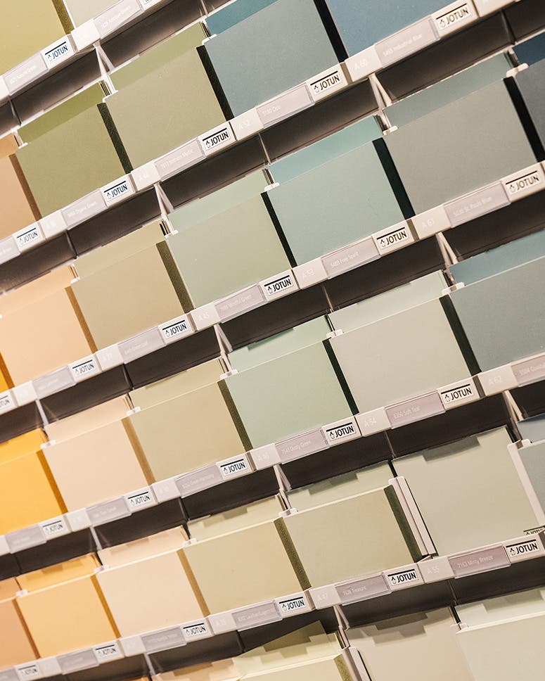 Våra butiker kan alla erbjuda hjälp med färgsättning och design av ditt hem. Vissa butiker har ett än bredare erbjudande med textilier, gardiner, badrumsinredning, möbler och belysning.