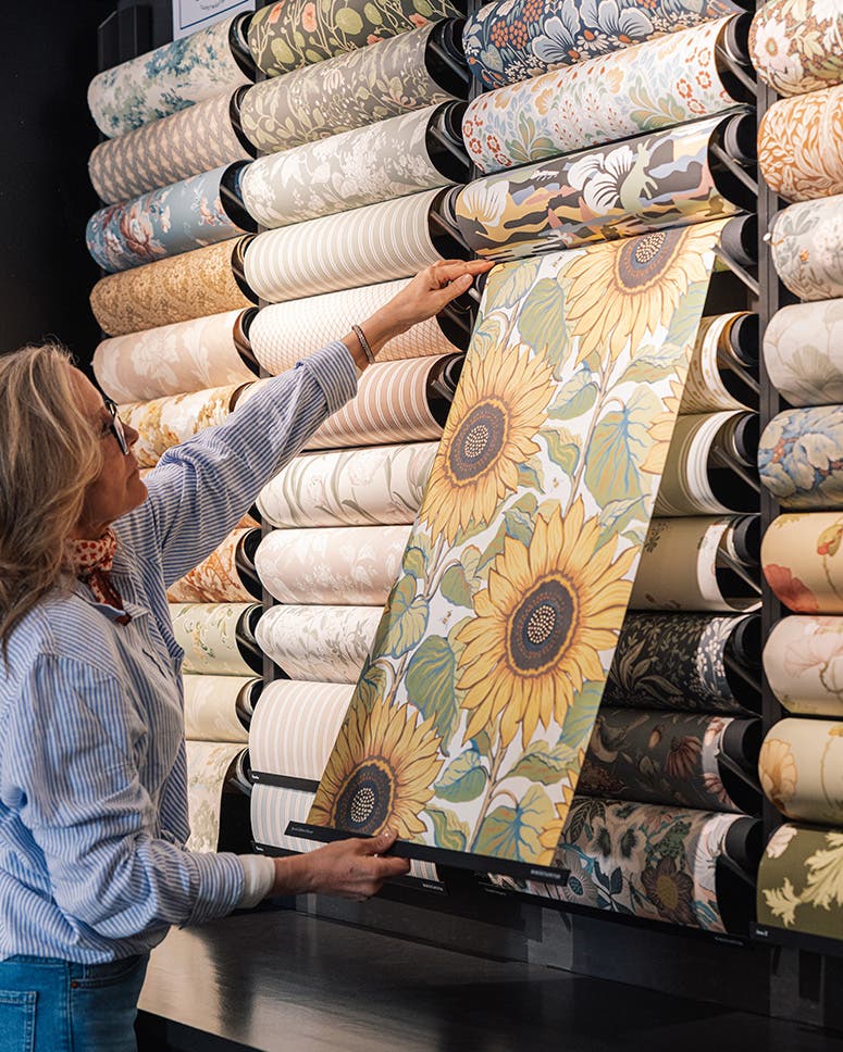 Det kan vara svårt att hitta rätt bland tapeter, färger, mönster och material. Att få till en snygg helhet kräver kunskap om varumärken, kollektioner och mönster. Men även ett tränat öga för vad som passar ihop och harmonierar med det du redan har i ditt hem.